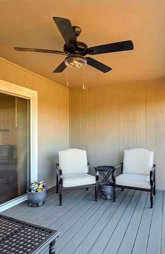 Professional installation of IP-rated weatherproof ceiling fans for outdoor areas such as decks, alfrescos and verandas. Built to withstand moisture and humidity.